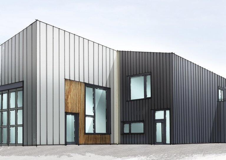 Ein Betriebsdienst- und Sozialgebäude zur Unterbringung des Fahrdienstes mit Kleiderkammer, Büro- und Schulungsräumen und Technikflächen.